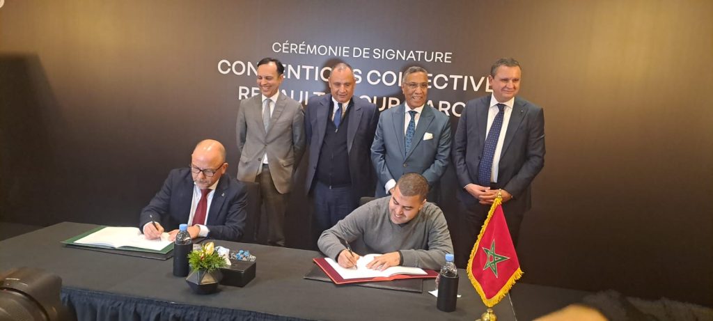 تم بحمد الله اليوم بالدارالبيضاء التوقيع على اتفاقية الشغل الجماعية في نسختها الثالثة بين إدارة مصنع رونو طنجة والمكتب النقابي لأجراء المصنع.